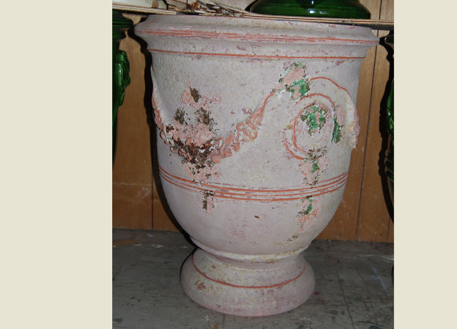 Traditional handmade French Anduze terracotta garden urn. Aged antique finish. Completely handmade in France using traditional methods, signed and numbered by potter. 1available.