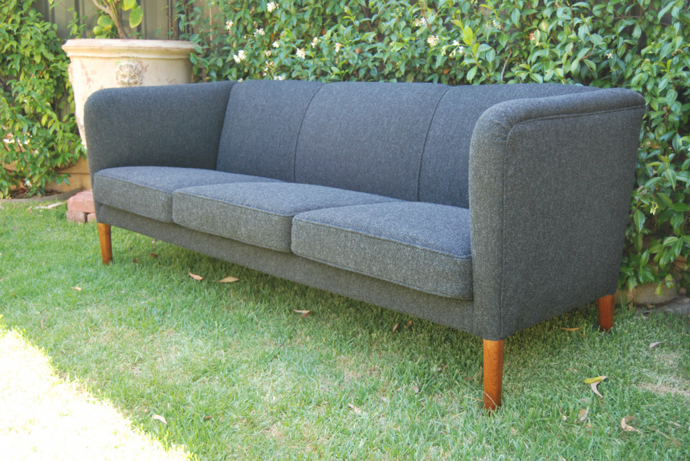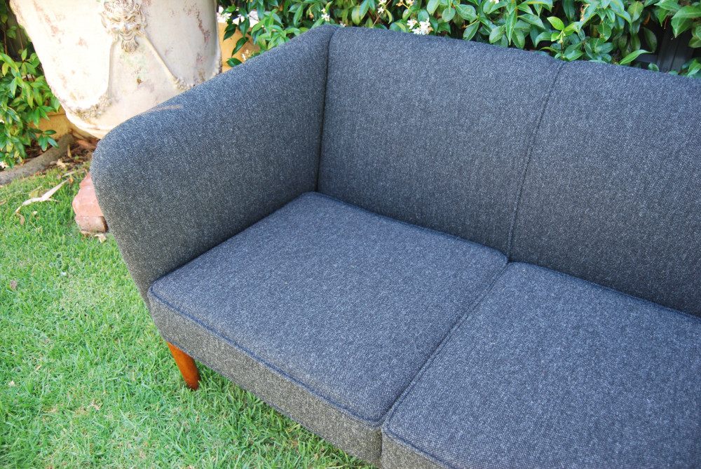 Hans Wegner sofa by AP Stolen, Denmark Circa 1950's. Fully reupholstered in Hallingdal charcoal wool, original sprung cushions, oak legs. A very comfortable and rare sofa. Model AP-18.