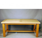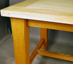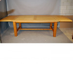 European oak dining table with stretcher base and two extension leaves. Manufactured in Denmark last quarter twentieth century . Two extension leaves of 500mm each. Closed length is 1800mm and fully extended length is 2800mm.