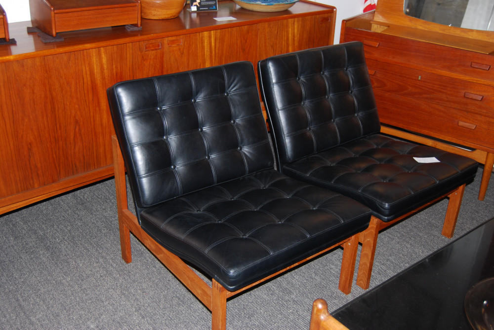 SOLD Pair of France & Son Danish leather chairs 36D070A