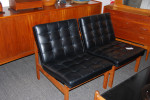 Pair of Danish teak and leather easychairs by France and Sons. Can be bolted together or kept separate.Original black leather upholstery in great condition.