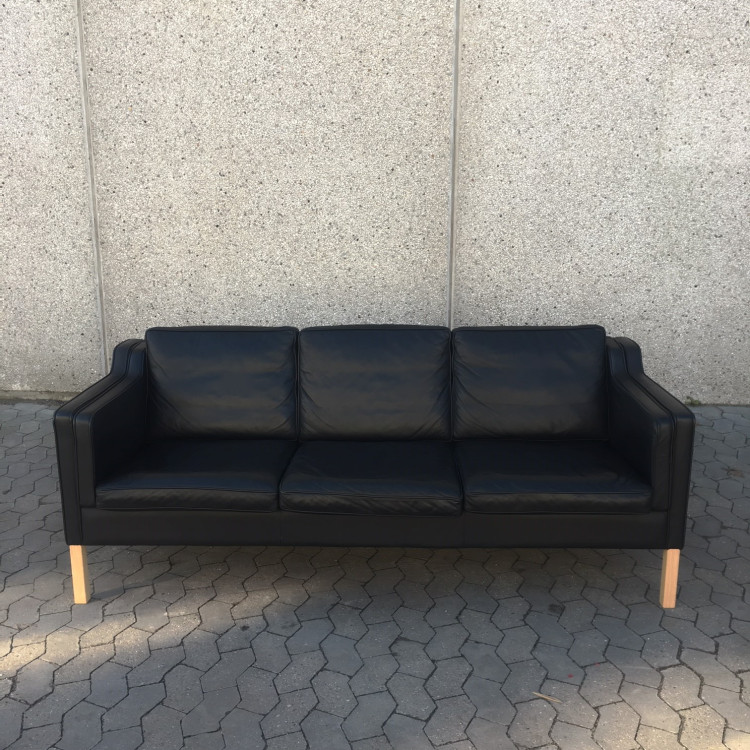 Superb Danish black leather 3 seat Stouby sofa, like new condition.