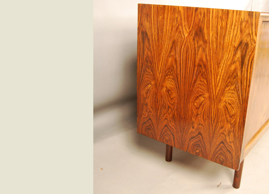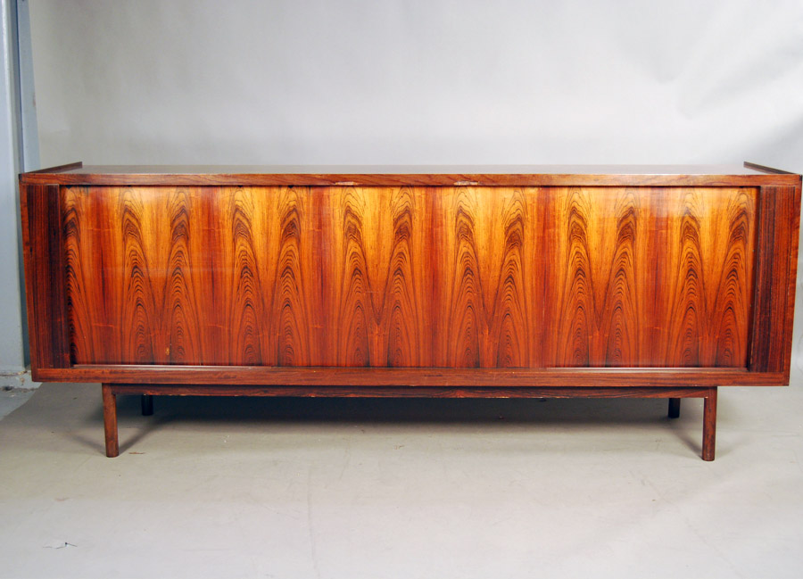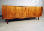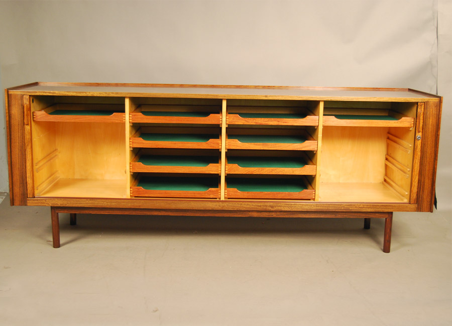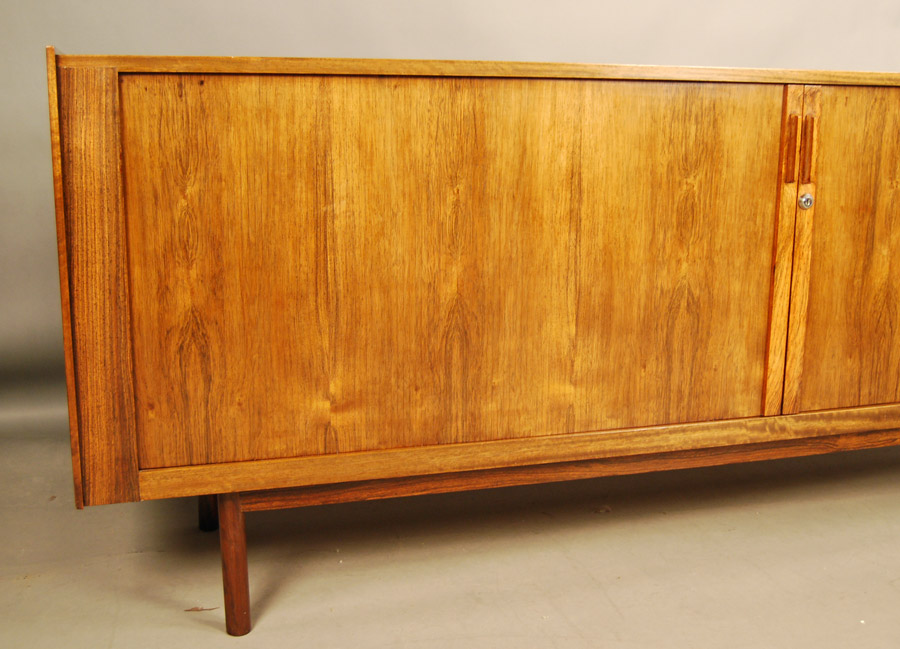 Arne Vodder rosewood tambour door sideboard. Fitted with interior drawers. Beautiful veneer all the way around to the back as shown. Great room divider.