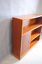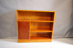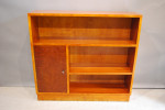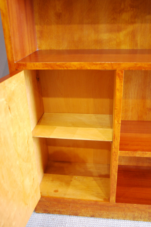 Small art deco birch bookcase with cabinet and original key. Some marks and patina. A great hallway or entrance piece.
