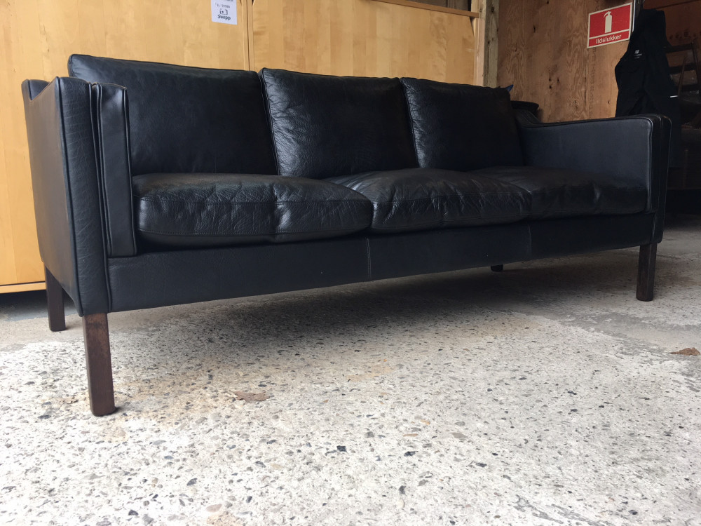 A danish leather three seat sofa by Mogens Hansen. Fabulous condition. In store now