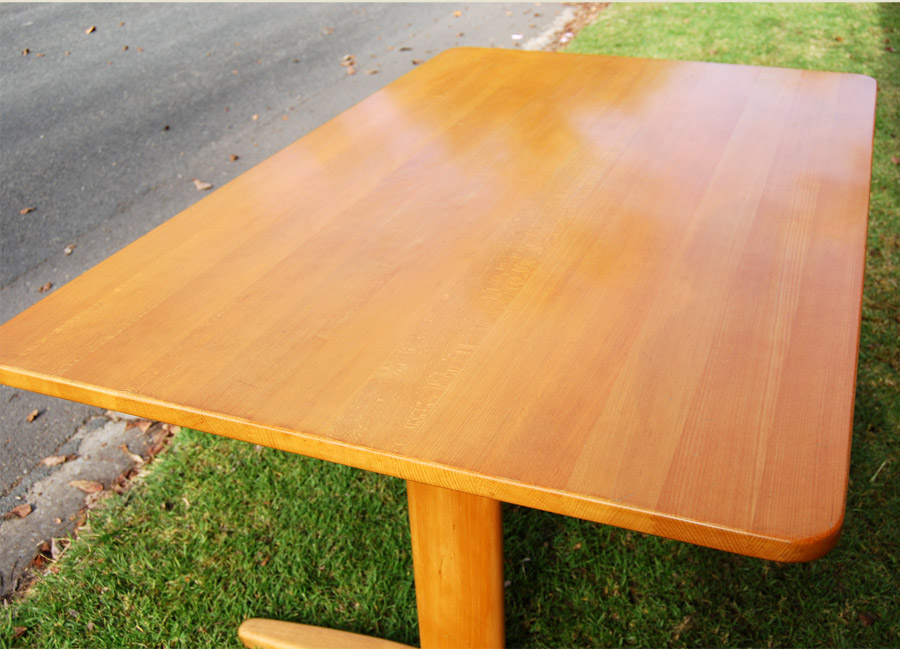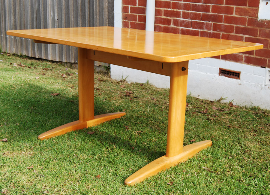 A solid beech dining table designed by Borge Mogensen and manufactured by C.M. Madsen. Makers stamp underneath. Original finish with some marks and patina. Circa 1960's.