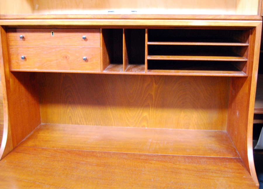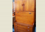 Borge Mogensen designed teak bureau on chest with an extra cabinet designed to sit on top for maximum storage. Cabinet is removable. A great design for child's bedroom with drawer storage underneath! Also great in a living room to work on the laptop!