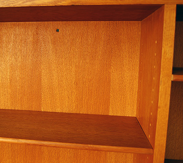 Danish oak bookcase designed by Borge Mogensen. A small hole has been drilled in the the back of the two top rear panels.