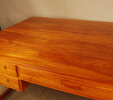 Danish early modern mahogany desk wiith five drawers. Patina and a few small repairs as shown in images.