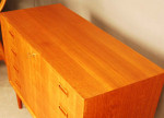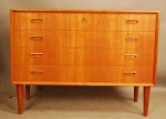 Danish teak chest of four drawers with drawer dividers to top drawer and rebated handles. Original key. Excellent condition.