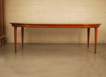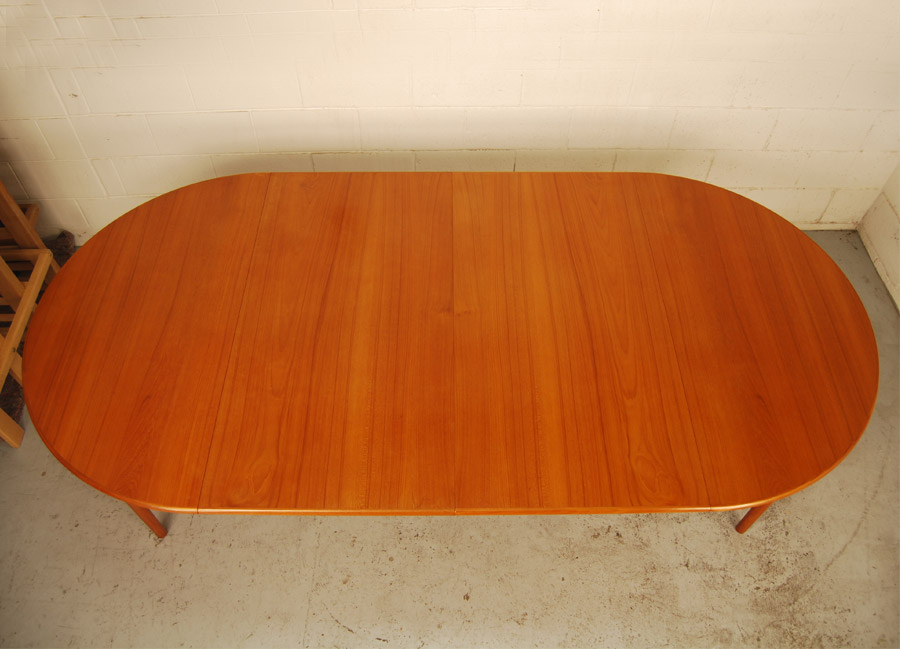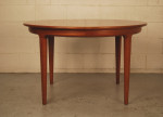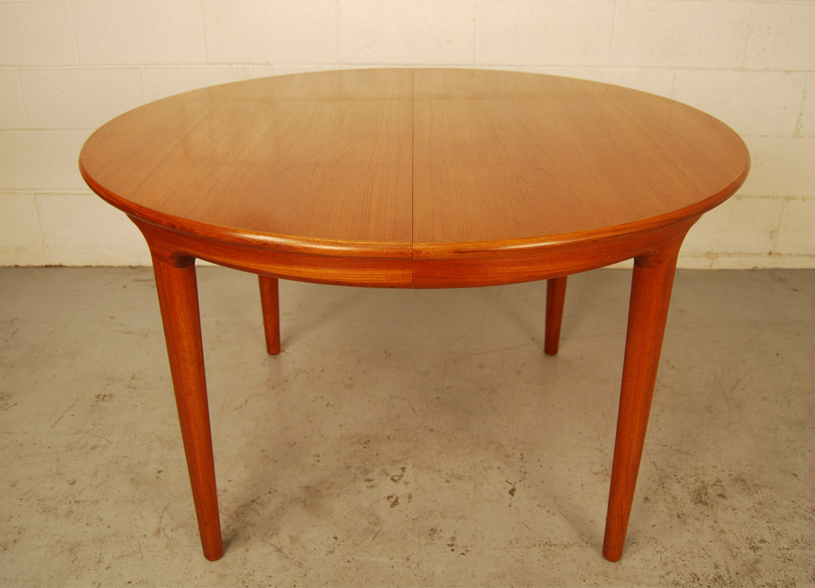 A beautiful Danish teak circular dining table which has two extension leaves with side rails. Leaves are 600mmlength each. Designed in the early 1960's by Johannes Andersen. Manufactured by Uldum Mobelfabrik, Denmark. Very good condition.