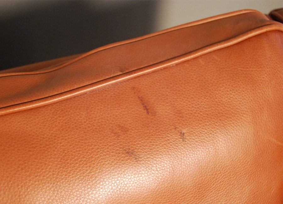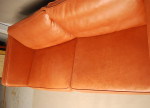 Danish 2 1/2 seat aniline leather sofa in red ochre. Lovely soft, supple high quality leather. A few minor marks and some fading, but high quality and very comfortable.
