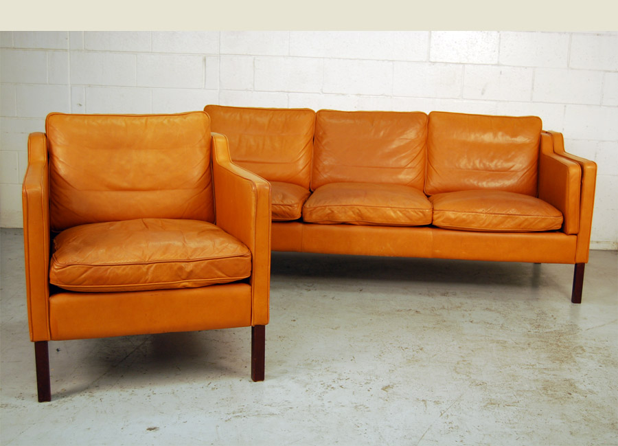 SOLD - Danish leather "Stouby' sofa and chair 30D006