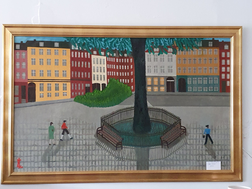 Home > furniture > SOLD Danish naive town square scene, very large 40D015