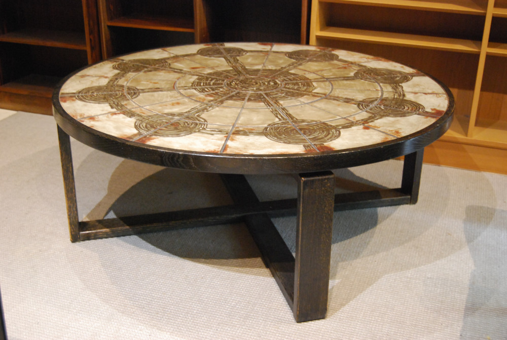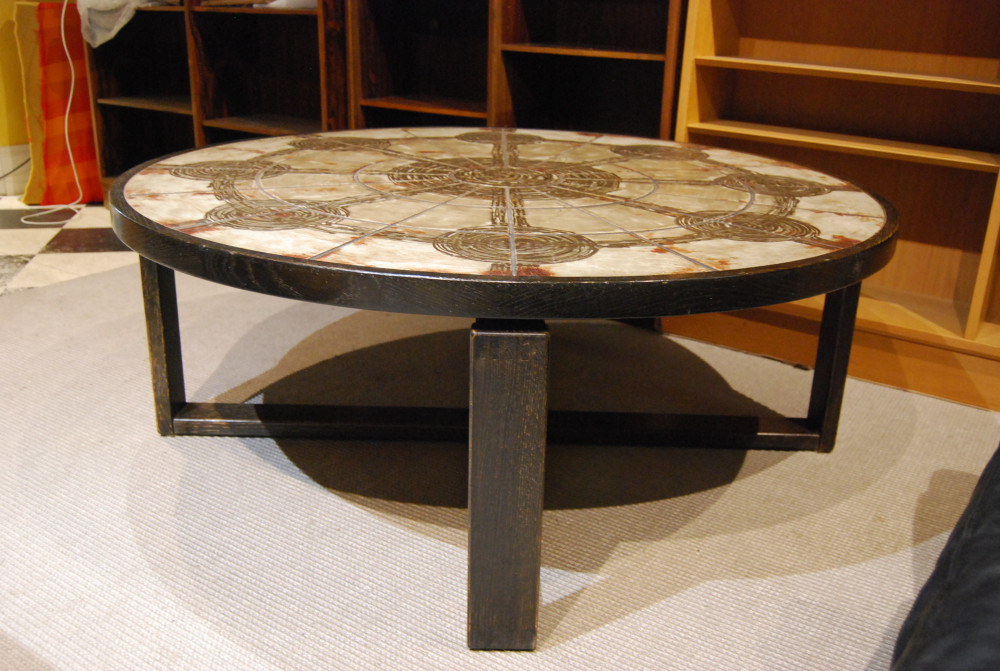 SOLD Danish oak and tiled top large coffee table 38D029