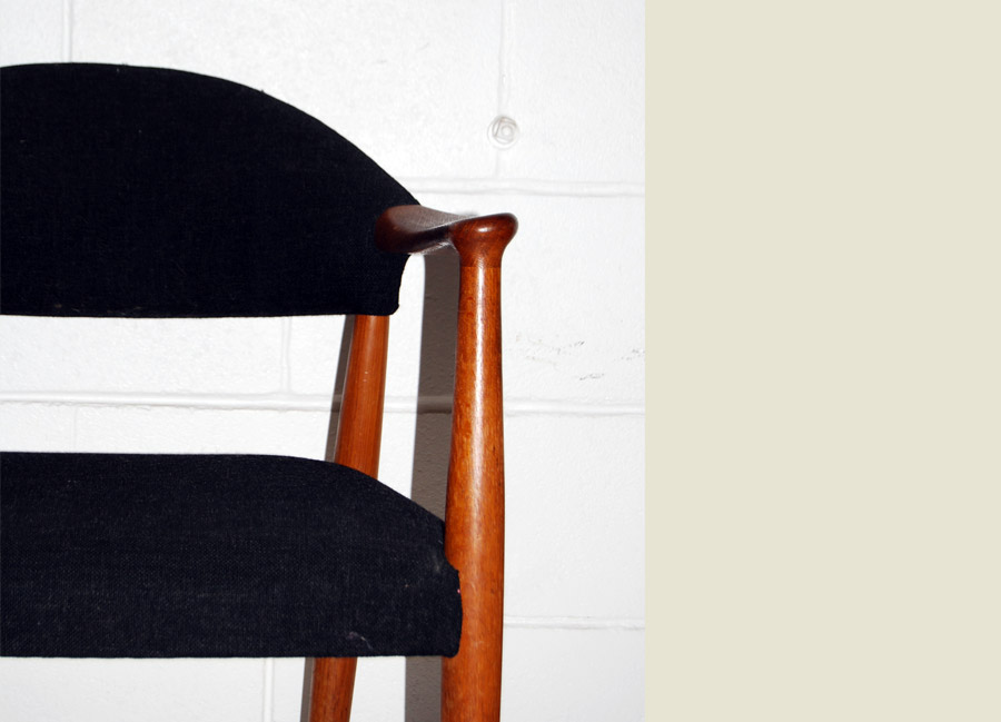 Danish oak armchair in original black Danish wool upholstery. Excellent condition. A great desk, occasional or side chair.
