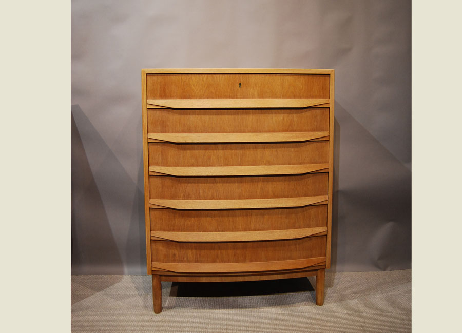 Home > furniture > SOLD Danish oak bowfront chest of drawers 39D046