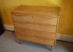 Danish oak chest of four drawers. Soap treated finish.