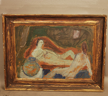 Danish oil painting. Nude study by Enja Lyngbye. Framed.