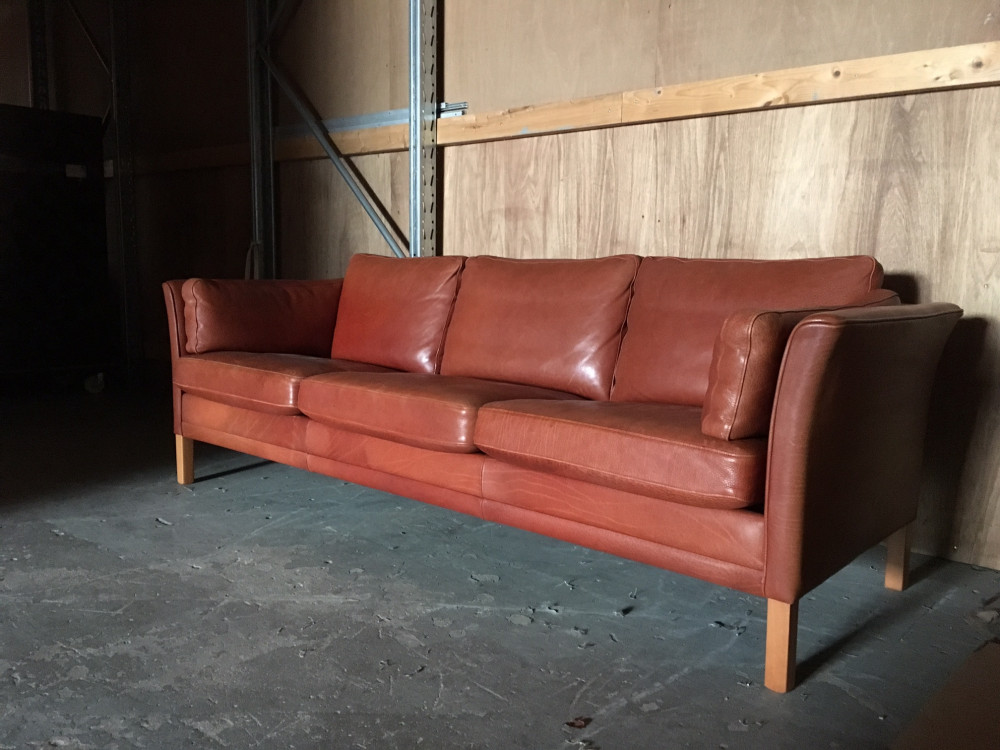 Home > furniture > SOLD Danish red ochre leather three seat sofa 36D091