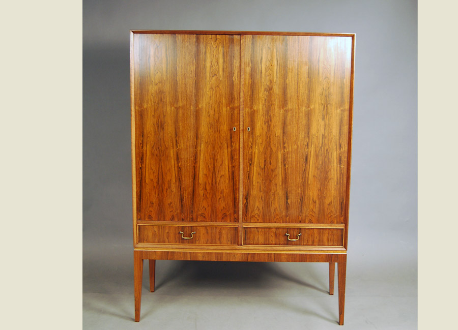 Danish rosewood two door cabinet by O. Bank Larsen. Interior shelves (adjustable height) and interior drawers.