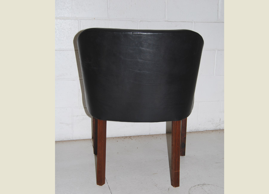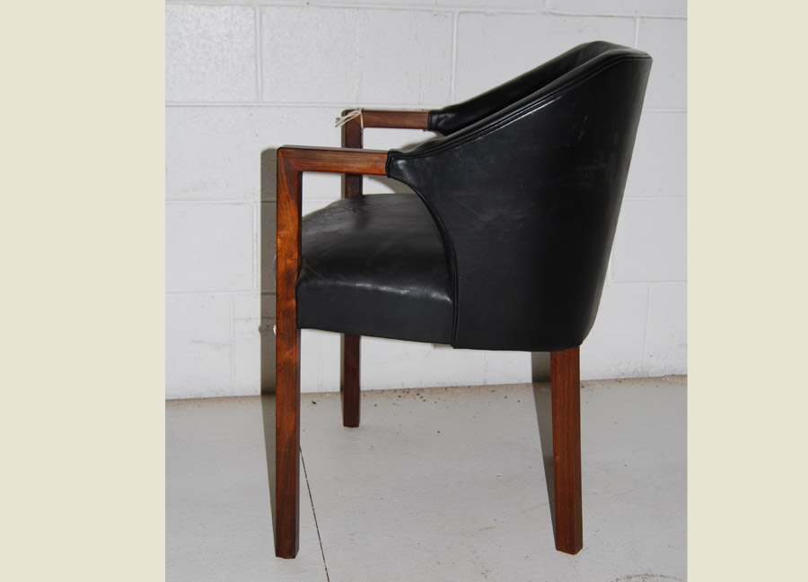 Danish rosewood and original black leather armchair. Leather with patina and crazing to seat. A beautiful elegant chair design would make a lovely side chair.