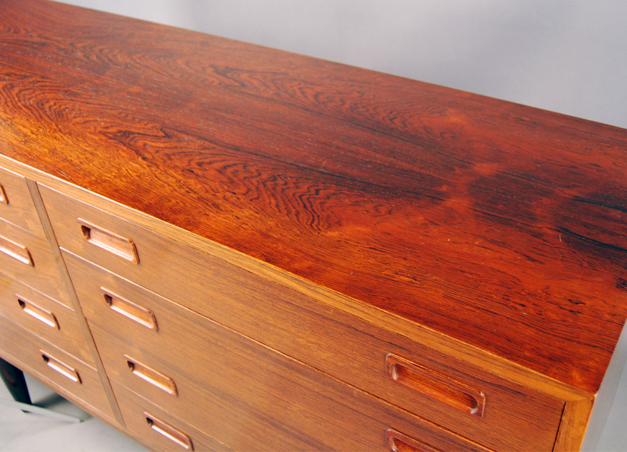 Danish rosewood bank of drawers by Hundevad. Fantastic storage and beautiful grain. Some scratches and patina as shown.