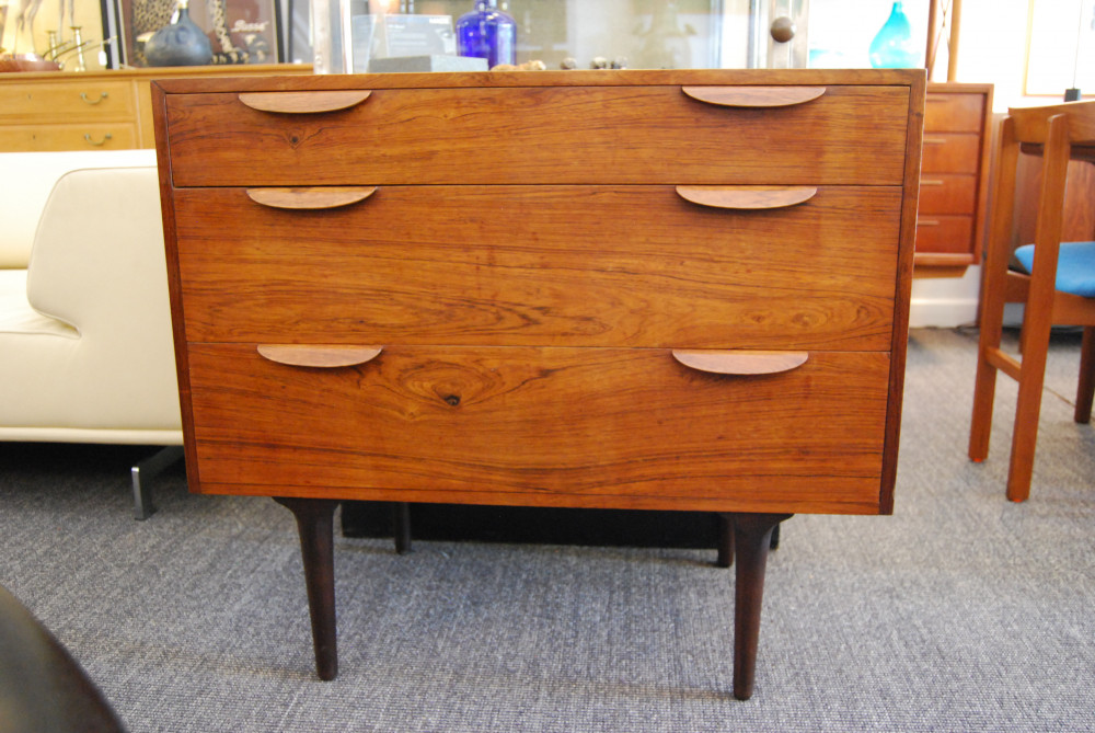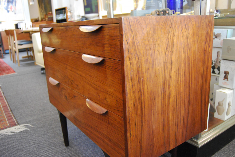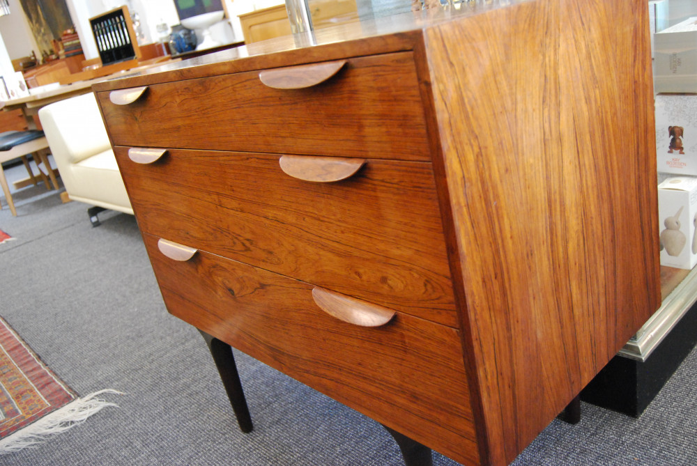 High quality Danish rosewood chest of three drawers. Nice deep drawers, lovely proportions. Restored original finish.