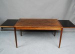 Danish rosewood coffee table with pull out formica shelves. Shown as found, price includes restoration.