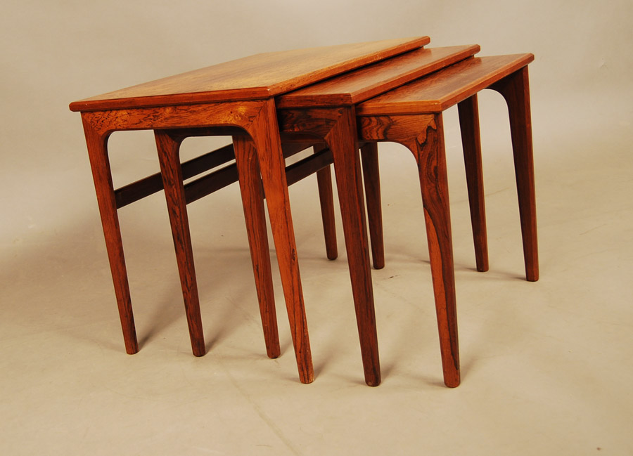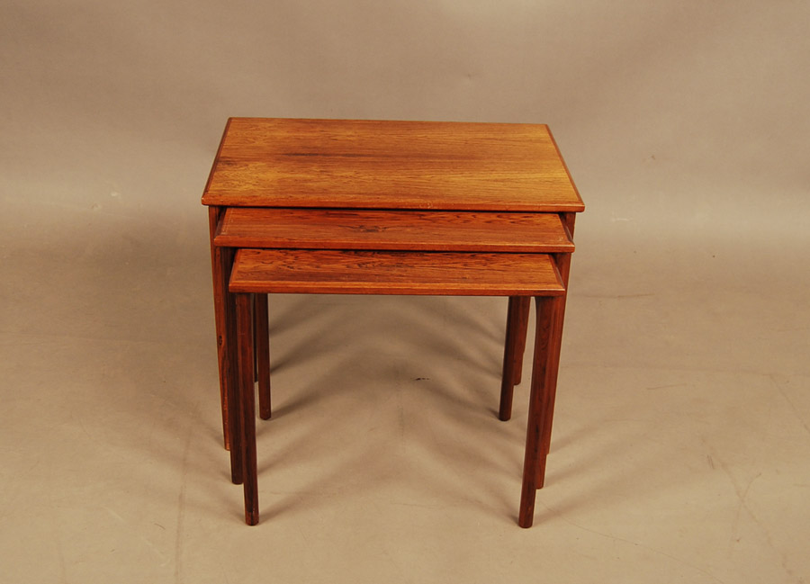 Danish rosewood nest of tables. Danish furniture control mark underneath. Shown as found, price includes restoration.