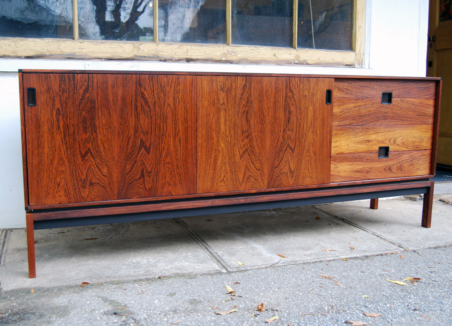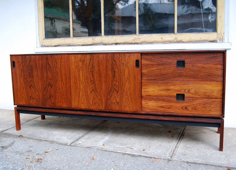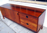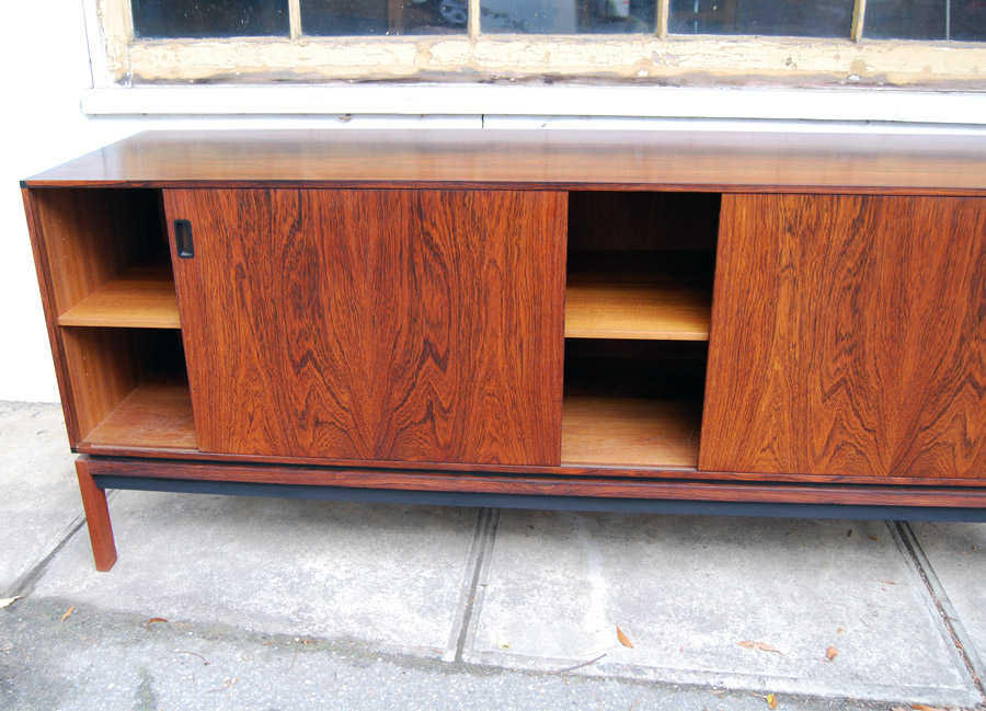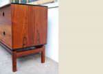 Hans Hove and Palle Petersen low freestanding rosewood sideboard. Manufactured by Chr. Linneberg. Lovely interior drawers and adjustable height shelves. A very hard to find classic design sideboard.