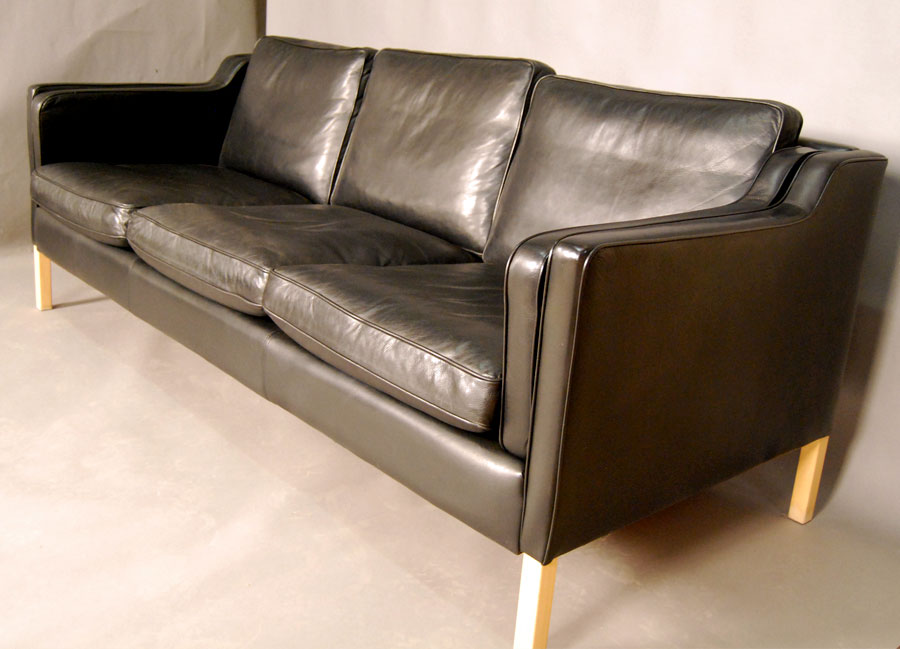 Danish black leather three seat sofa by Stouby. Quality sofa in great condition.