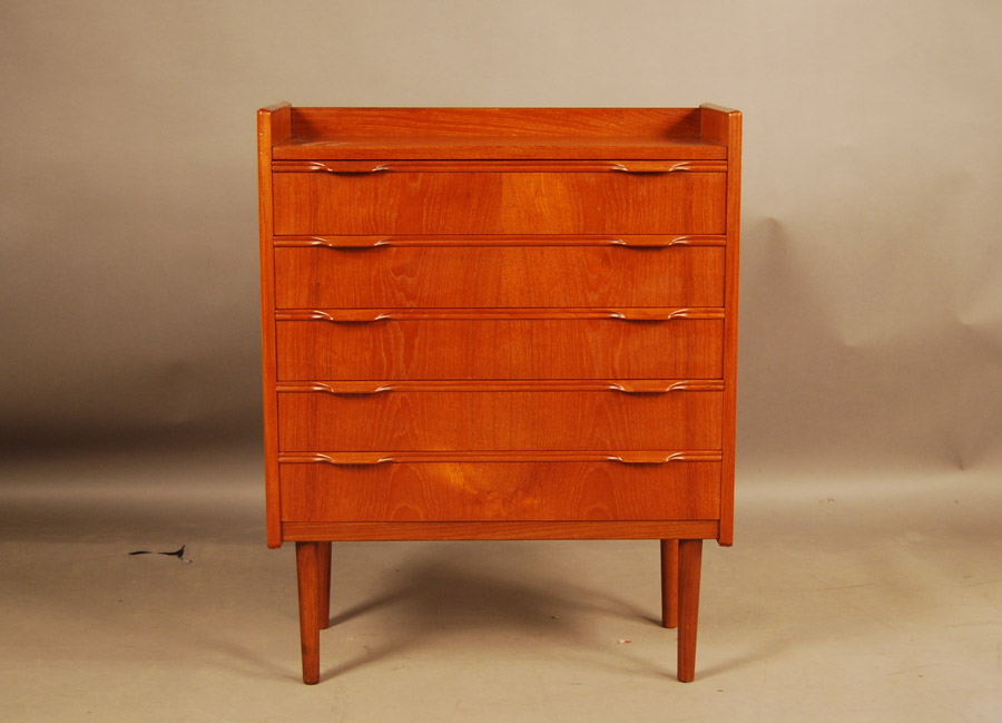 Small Danish teak chest of drawers. Some patina to top. Lovely small chest.