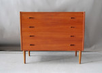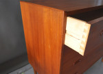 Danish teak chest of four drawers. Age related wear. Restored condition. Drawer runners work beautifully.