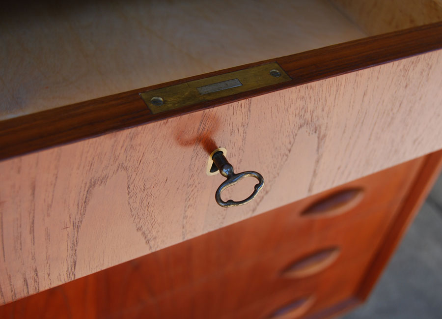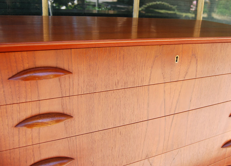 Danish teak chest of drawers in fully restored condition. Original key included. We have two of this model available.
