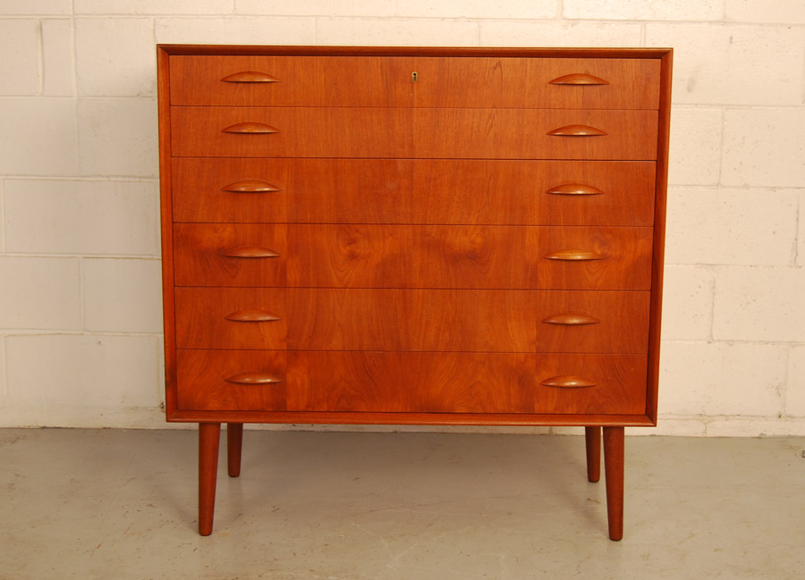 Danish teak chest of six drawers with beautiful grain pattern. Excellent condition.