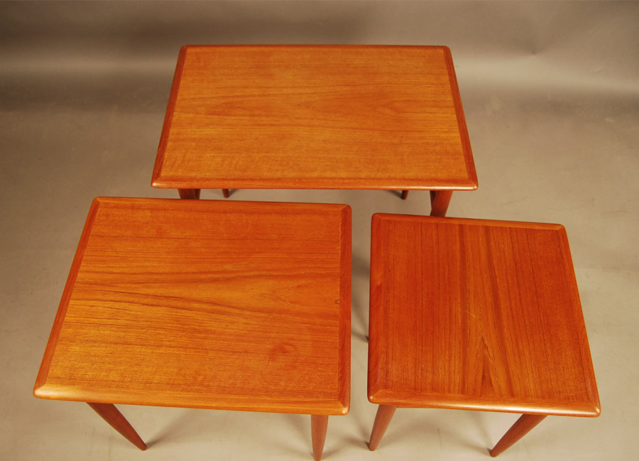 Danish teak nest of three tables by Kai Kristiansen. Some marks and scratches (minor).