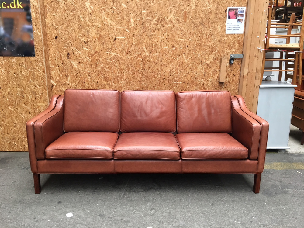Beautiful three seat Danish red brown leather sofa by Mogens Hansen. Excellent quality and condition.