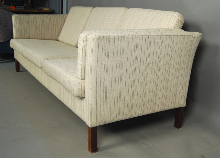 Danish three seat sofa in cream stripe Danish wool. Very good condition.