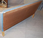 Danish sofa designed by Einar Larsen in original blue/white pin stripe wool upholstery. No upholstery to back as it is designed to sit against a wall. Very good condition and comfort. A very well built quality sofa.