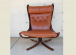 Sigurd Ressell Falcon Chair with stained beech frame and leather. Excellent condition. Matches 28D033B