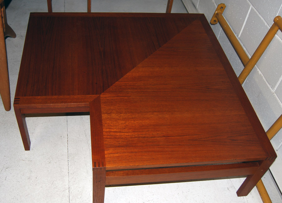A Fance & Sons teak corner coffee table. Can be bolted to France & Son easychairs. Beautiful design low table in excellent condition.
