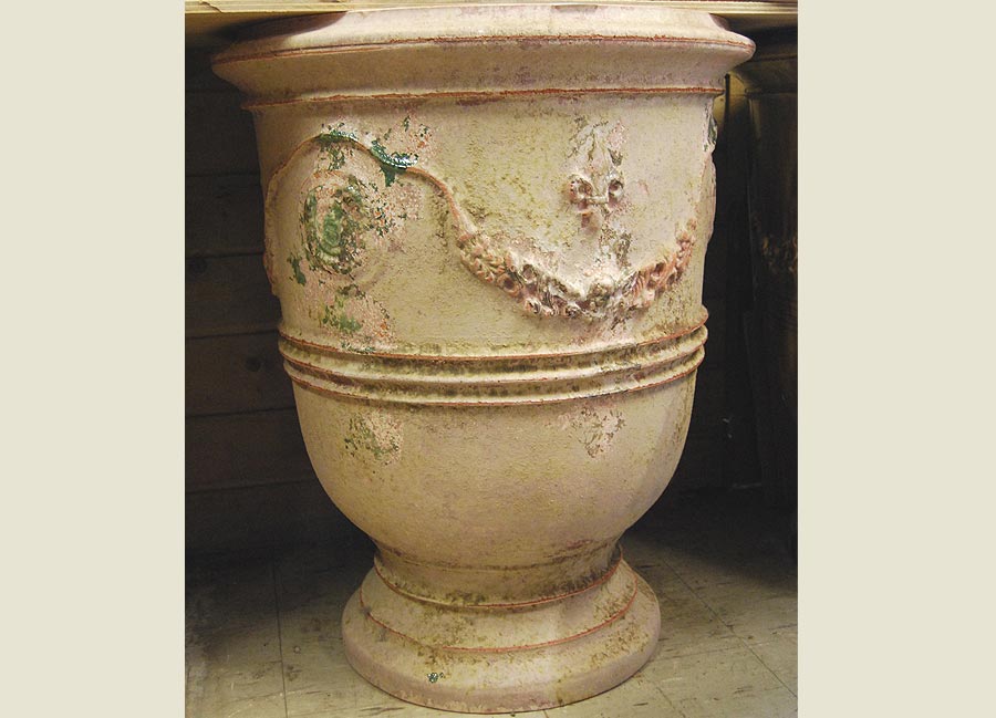 Traditional handmade French prestige model Anduze terra cotta garden urn. Old antique finish. Completely handmade in France by traditional methods, signed and numbered by potter. A stunning addition to any garden, courtyard or interior.