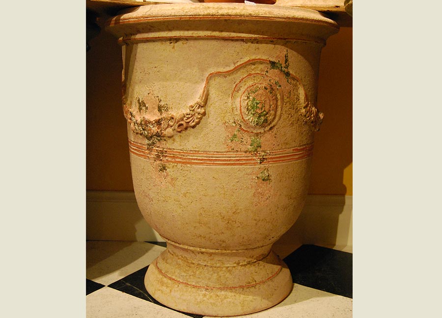 Traditional handmade French Anduze terra cotta garden urn. Aged antique finish. Completely handmade in France by traditional methods, signed and numbered by potter. A stunning addition to any garden, courtyard or interior.