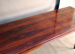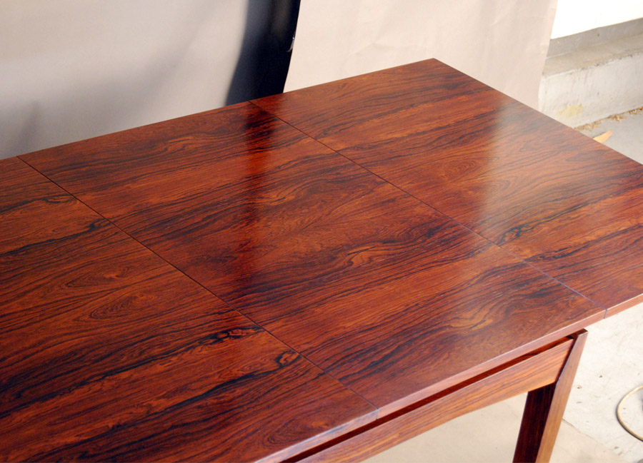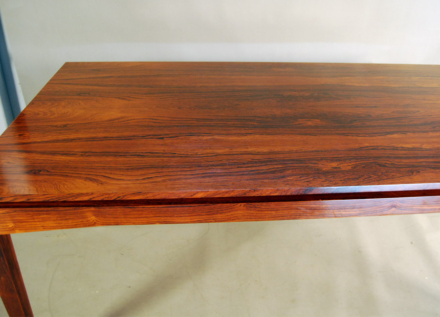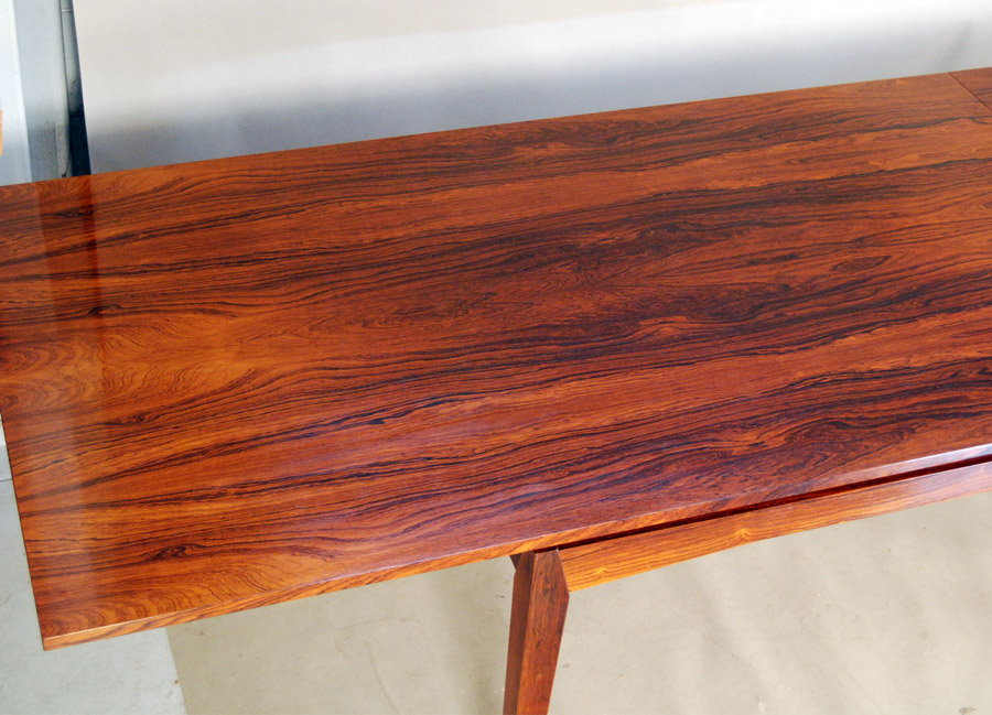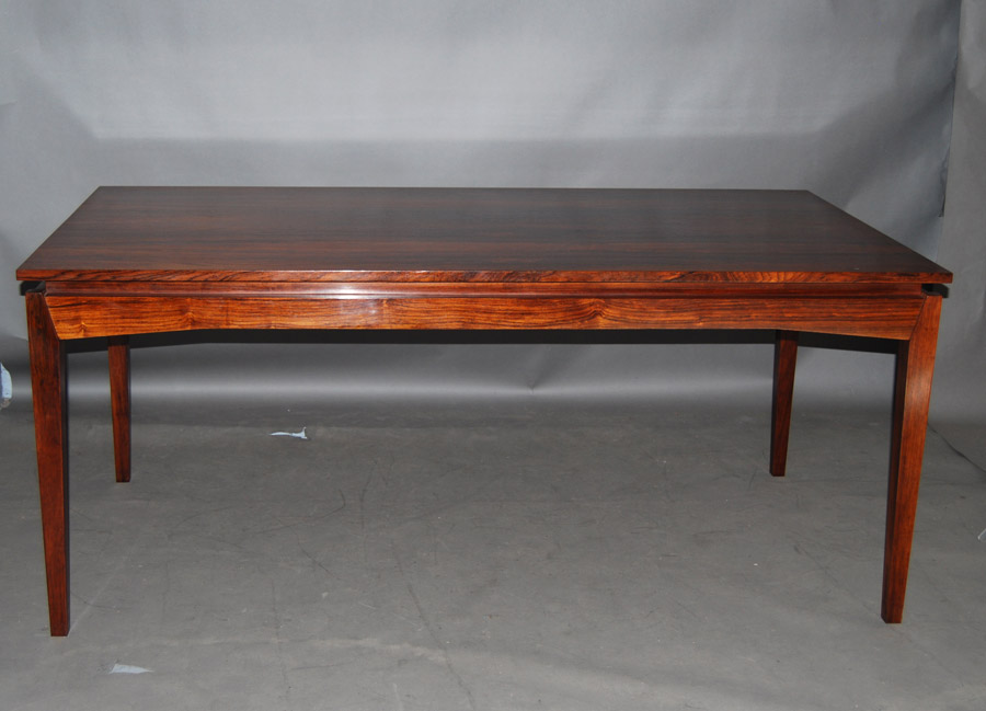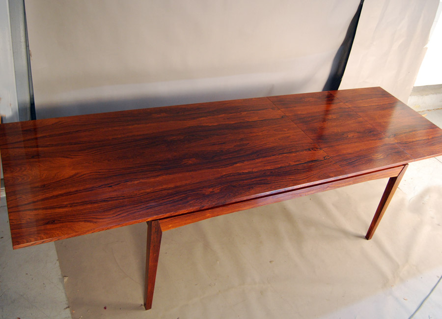 Danish rosewood extension table designed by H.W.Klein. 2 x leaves are stored inside table. Fantastic design, a very hard to source table. Leaves are 560mm length each. Fully extended this table measures 2810mm.