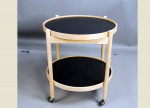 Trolley designed in 1963 by Danish architect Hans Bolling. Trays reversible for colour variation and removable to fold flat.