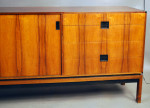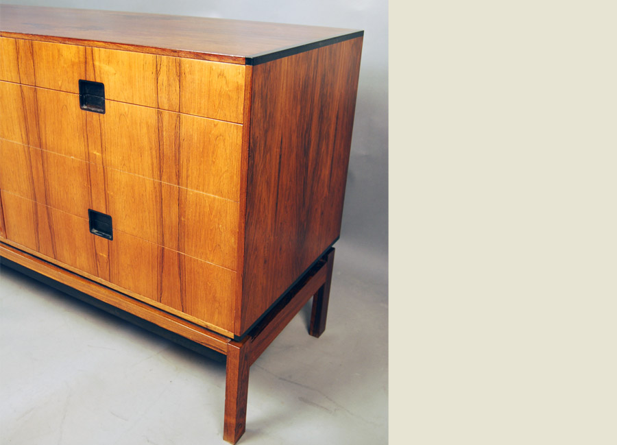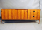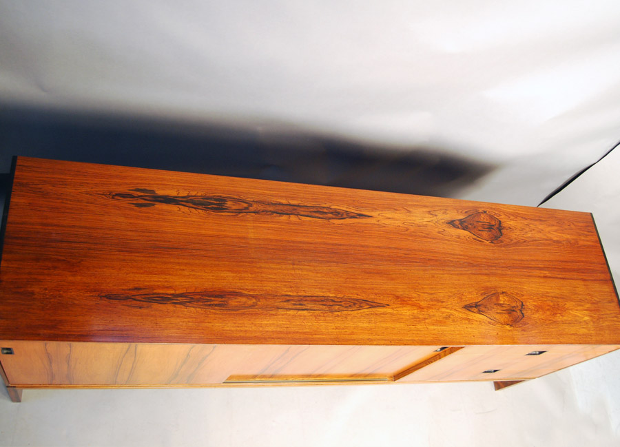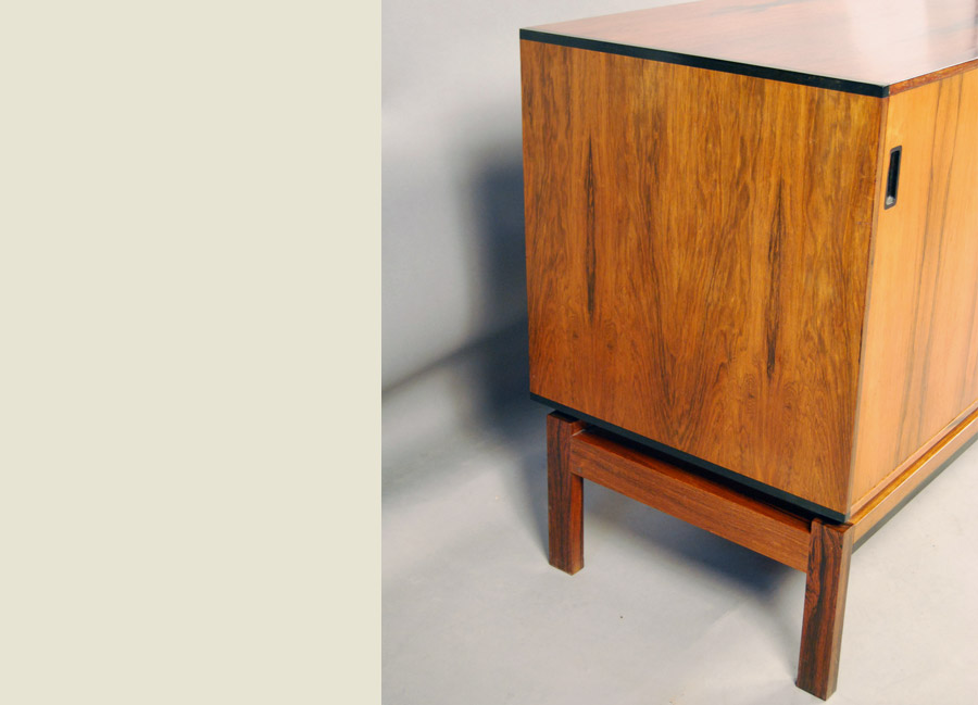 Hans Hove and Palle Petersen low freestanding rosewood sideboard. Manufactured by Chr. Linneberg. Lovely interior drawers and adjustable height shelves. A very hard to find classic design sideboard.