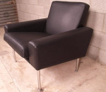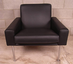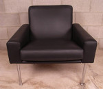 Hans Wegner easychair, Model AP34, made by AP Stolen Denmark. Fully reupholstered in black leather, a fantastic rare chair in perfect condition. Very comfortable.