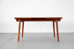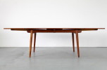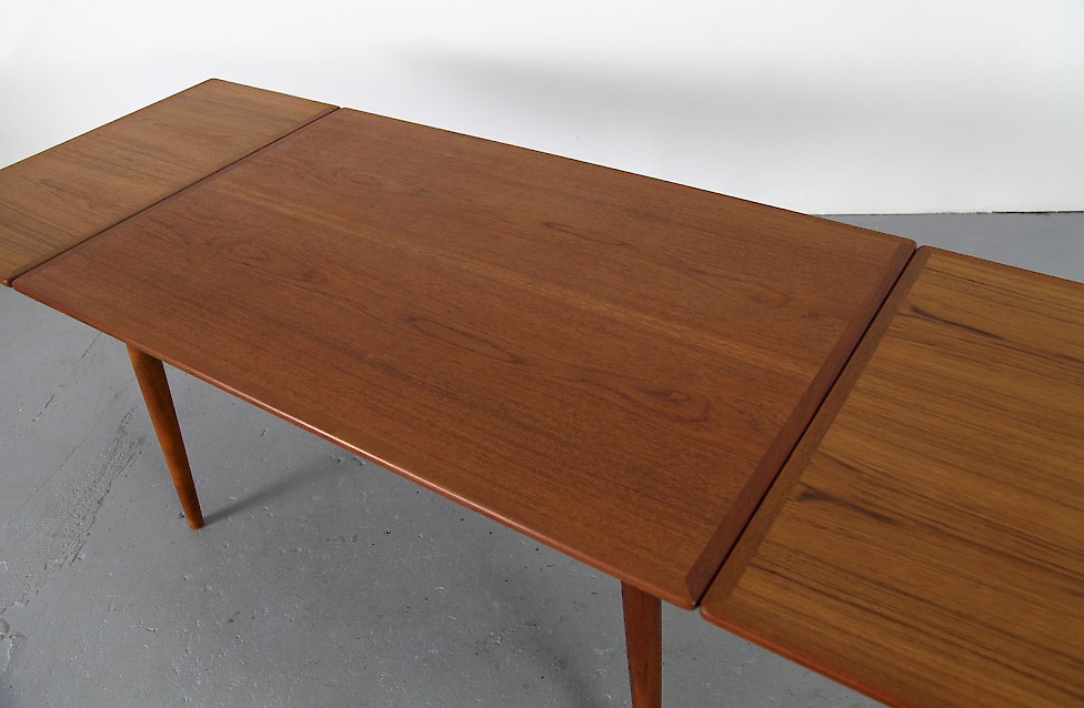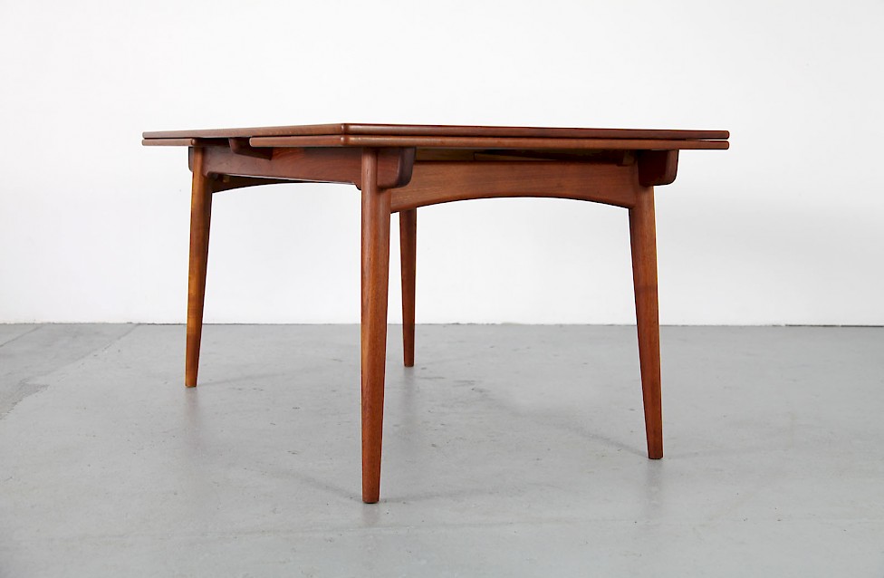 Extending dining table by Hans J. Wegner, manufactured by Andreas Tuck in Denmark. High quality workmanship and material. Organic design with two extending leaves. Excellent condition, with only a very small edge of raised veneer on one leaf. Makers stamp underneath. Sample images only, true images to come soon. Extends from 1400 to 2400mm.