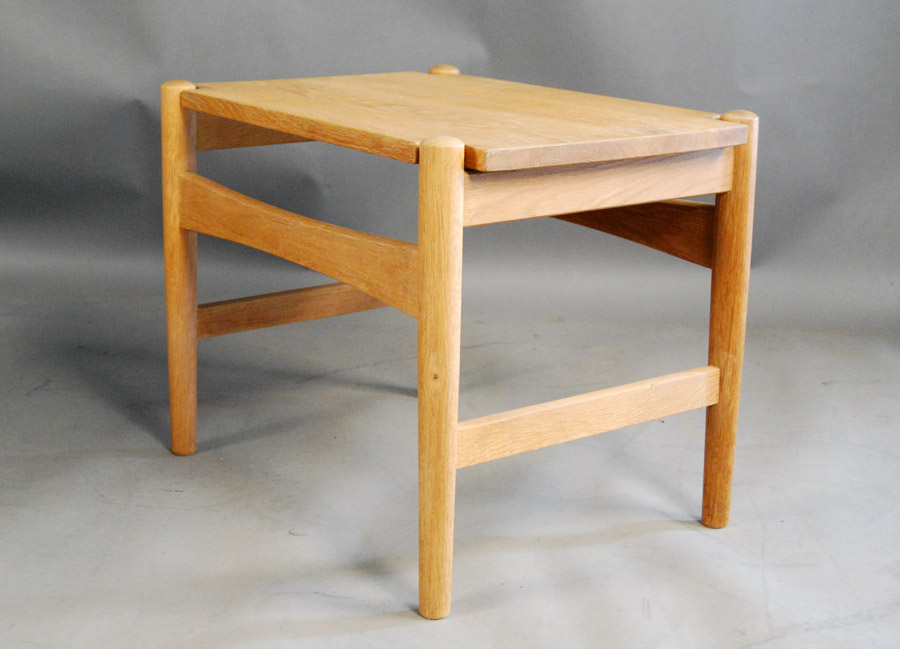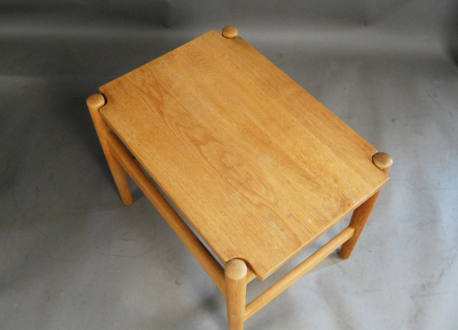 Hans Wegner oak side table with removable top. Soap treated finish.